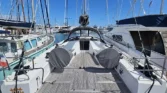 This yacht is easily sailed by a capable sailor or a couple, but really shows off when there is a full crew. The three pairs of Harken winches, located perfectly for precise trimming and unencumbered movement, were tested using a one-to-one scale model in house using an Olympic sailing team.